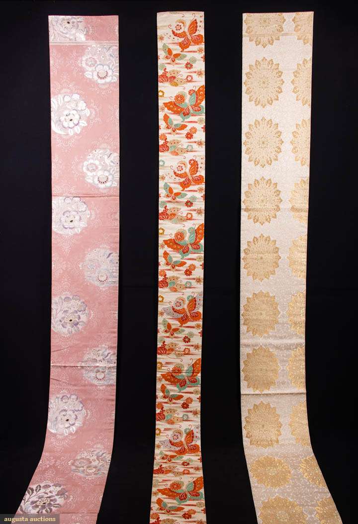 THREE BROCADED SILK & METALLIC OBI, 20TH C