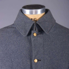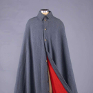 Grey wool broadcloth cloak w/ red wool sateen lining, button fronts stamped "Cadet V.M.I", button backs stamped "Superior Quality", SH-SH 19", L 53", (tiny-0.25" holes, light stains, 0.5"-1" seam openings collar closures) very good.