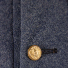 Grey wool broadcloth cloak w/ red wool sateen lining, button fronts stamped "Cadet V.M.I", button backs stamped "Superior Quality", SH-SH 19", L 53", (tiny-0.25" holes, light stains, 0.5"-1" seam openings collar closures) very good.