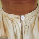 Band collar with china button, three quarter sleeves edged in crochet zig-zag lace, all hand sewn, (heavily stained) fair.