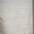 Tabby cotton, split crotch, legs tucked and edged with whitework eyelet embroidery, machine stitching, (stains, button replaced) fair.