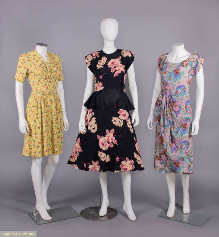 THREE PRINTED SILK DRESSES, AMERICA, 1940s