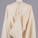 Both fulled wool w/ twined braid & appliqué embroidered top seam on “hood” & knotted netting inserted godet between openings, both SH-SH 20", L 55", (1 w/ few stains up to 1" at hem, 1 w/ few sm holes in hood, both w/ light pilling/wear/discoloraion) both very good. From the Estate of Doris Duke, Newport Restoration Foundation.