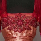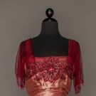 Synthetic silk, red chiffon beaded yoke & sleeves, torn underarms
