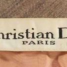 2-piece dress of mottled tan & cream wool, label "Christian Dior Paris" stamped "05613", box pleated skirt w/ attached under bodice, separate short sleeve surplice top w/ 2 buttons to Waist, B 36" - 38", W 26", L 46", excellent; t/w 1 black faille eveningcoat, excellent