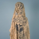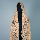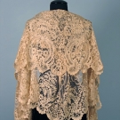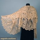 Hand embroidered Spanish blonde lace on ecru silk net, 36" X 78" irregular, attributed to Napoleon's second wife, Marie Louise of Austria, excellent.