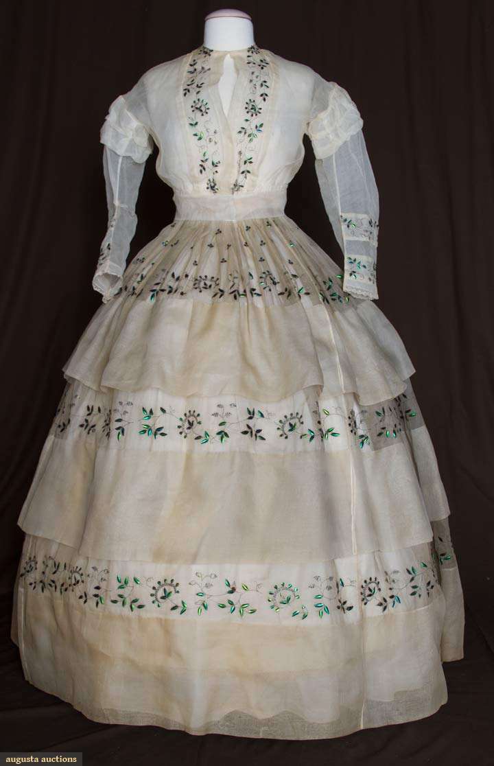 BEETLE TRIMMED ORGANDY DRESS, 1860s