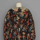Black twill weave w/ red & blue chrysanthemum print.