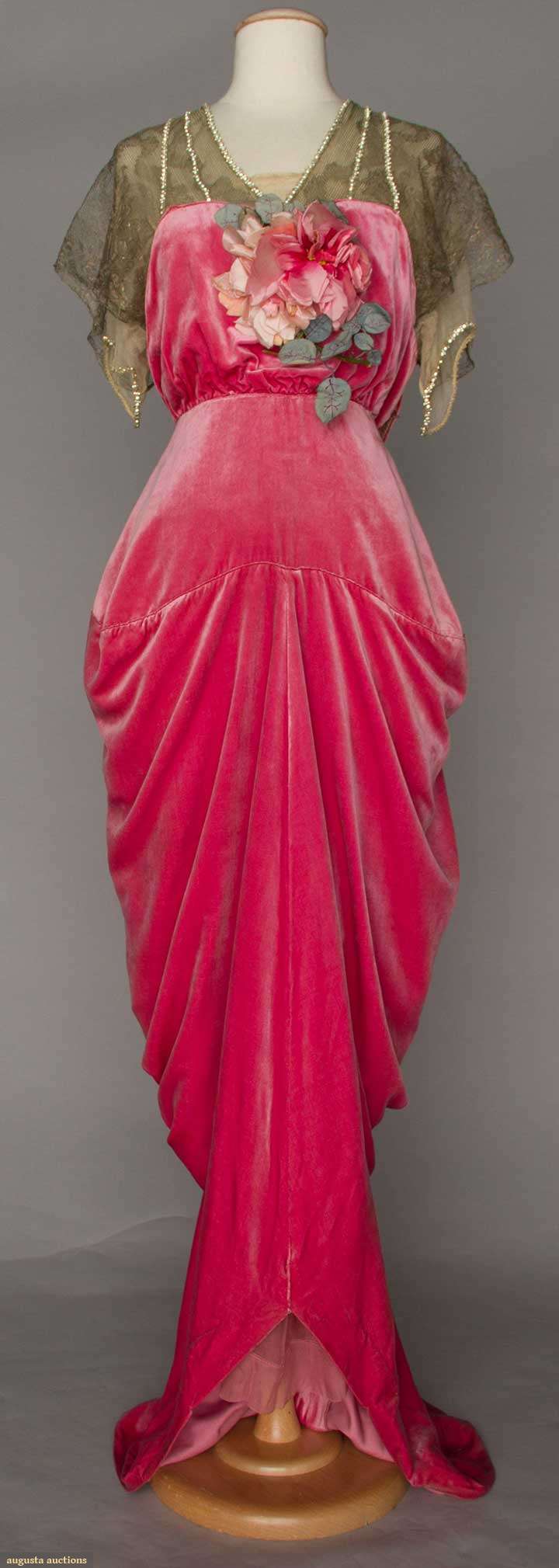 RASPBERRY VELVET HOBBLE SKIRT GOWN, PARIS, 1910-1914