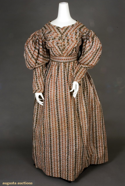STRIPED FLORAL COTTON DRESS, 1825-1830