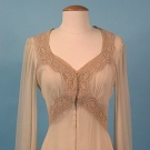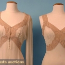 Light cream silk chiffon w/ ecru lingerie lace, bias cut, B 36", W 29", L 56", label "Galbraith Original", (small spot) excellent.