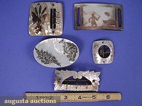 5 MOTHER OF PEARL BUCKLES, 1890-1940
