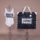 Black & white star motif one-piece swimsuit w/ matching black oversized tote bag,