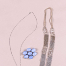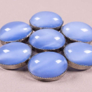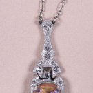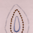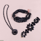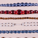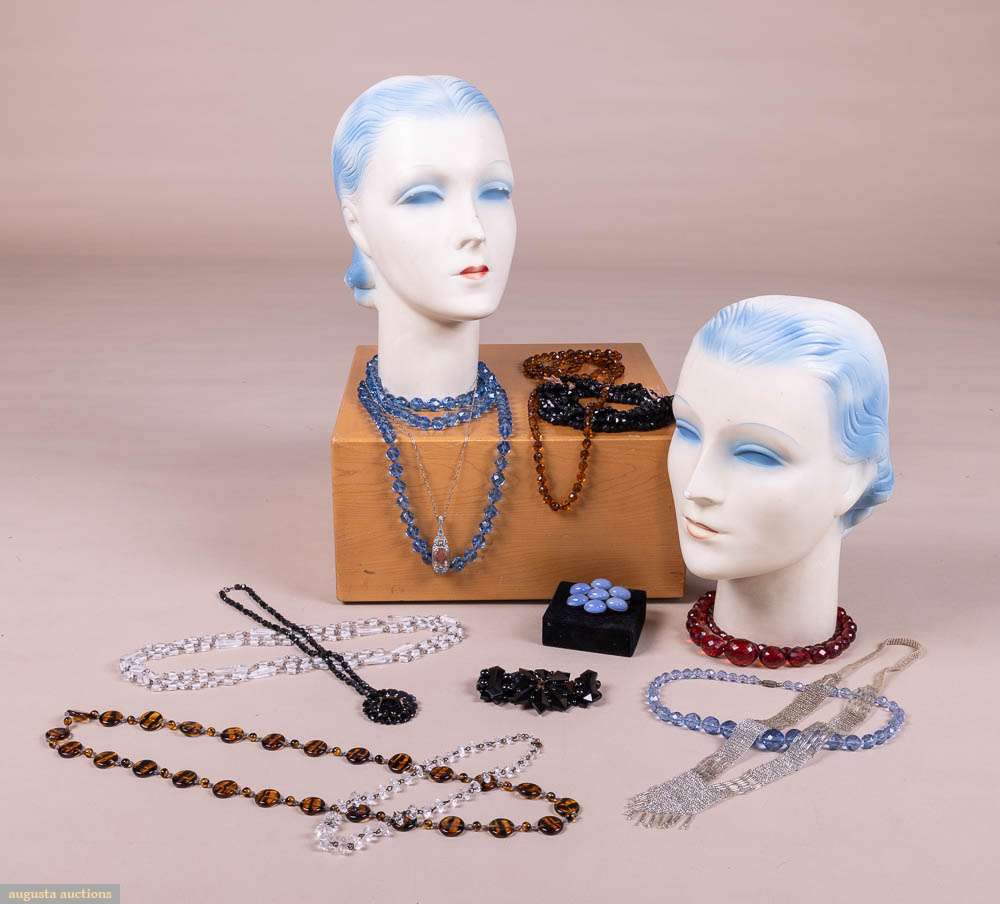 Generous lot of 13 crystal necklaces in clear, blue, amber, red & black hues, and 2 brooches. Very good-excellent.