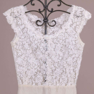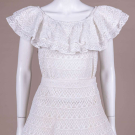 1 2-pc white lace day dress w/ ruffled neckline, c/o blouse & skirt, top B 34”, L 20”, skirt W 26”, L 30”. 1 white guipure lace blouse, B 34”, L 20”. Excellent.