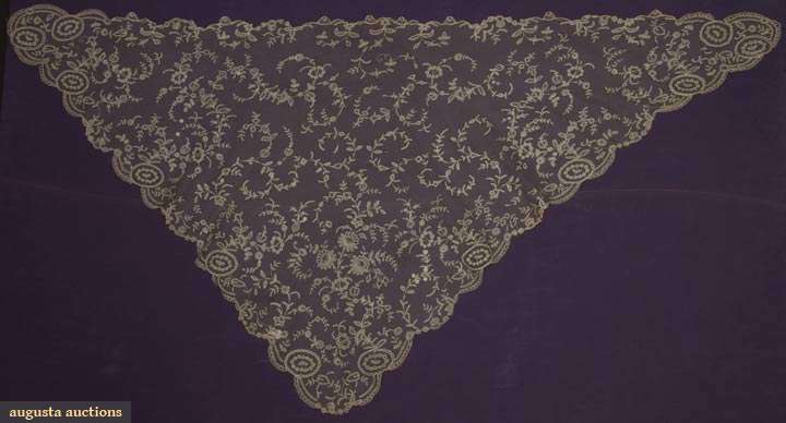 BRUSSELS APPLIQUE LACE SHAWL, MID 19TH C