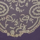 Cream hand made Brussels bobbin lace appliqued on machine made cotton net, 48" x 96", (small brown stains, scattered tiny holes, 6-7 tiny repairs) very good. BROOKLYN MUSEUM
