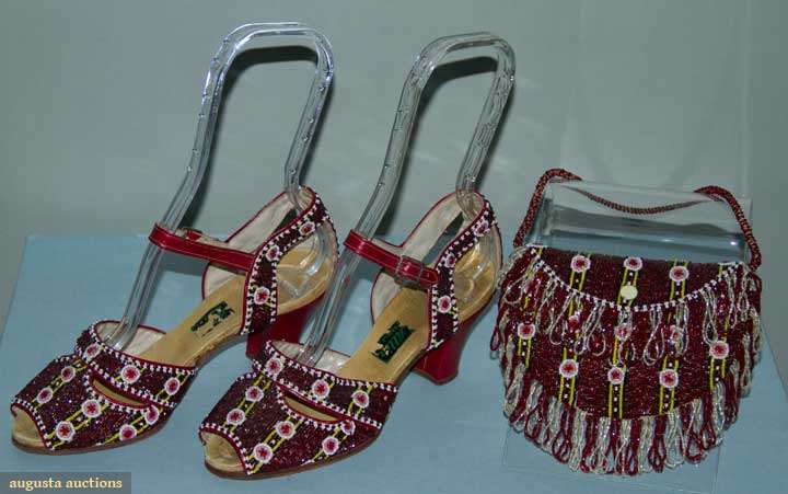 PAIR BEADED SANDALS & EVENING PURSE, 1940s
