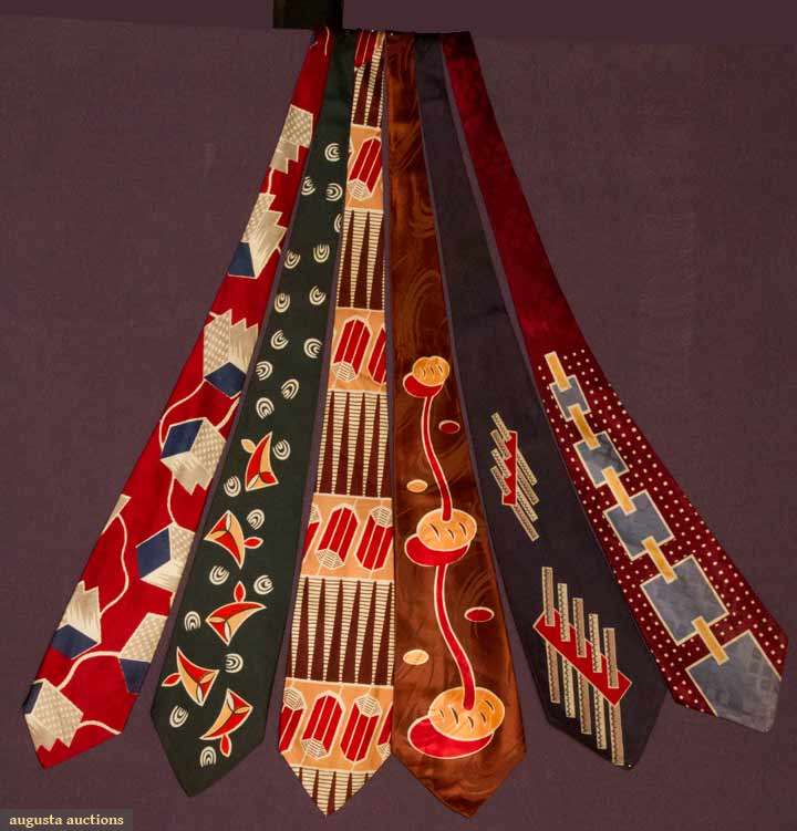 SIX UNUSUAL GRAPHIC PRINT NECKTIES, 1940-1950s
