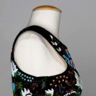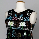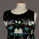 Black velvet regional bodice, large scale colorful floral embroidery, B 34", L 19", excellent.