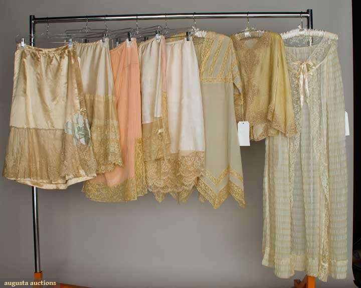 All w/ lace trims: 8 silk petticoats; 1 silk velvet bed jacket & 2 peignoirs, very good-excellent. MCNY