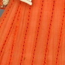 1 c. 1900 2-piece burnt orange seersucker, lace bodice trim, flounced & trained skirt, (few pale stains) fair; 1 c. 1912 1-piece dark rose flannel, empire bodice trimmed w/ silver metallic & embroidered appliques & silk corded sash, petersham label "McFadden Philadelphia", B 36"-38", W 29", L 61", (grey smudge along hem edge, bodice lining shattered) very good.
