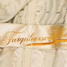 Black silk faille w/ metallic gold brocade, gold lace sleeves & under dress beneath black silk tulle, label "Farquson & Wheelock", B 36", W 24", L 59"-74", (altered to be smaller, lace mends, gold brocade worn in places) very good.