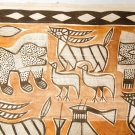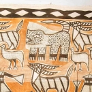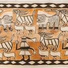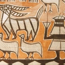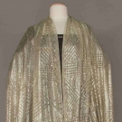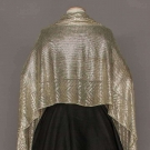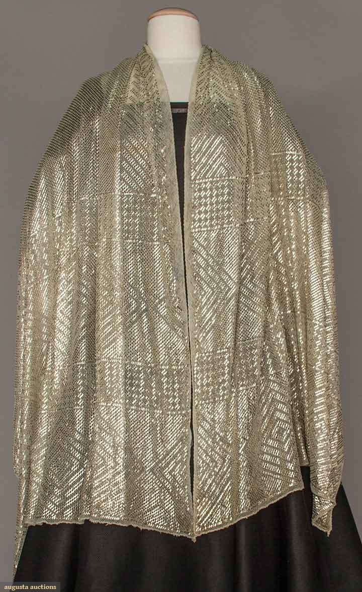 Hammered silver tinsel on white cotton net in geometric designs, 38" x 84", (few mild tarnish spots, couple tiny holes in net) very good.