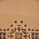 1 heather woven brown/cream heavy linen, sand color cotton floss embroidered band along length w/ inset embroidered border of black outlined metallic gold diamonds, needle lace & cutwork ends, heavy macrame & fringed tabs hang from both ends, 21.5"X73", excellent; 1 cream basket weave multi-strand cotton, 5" embroidered end bands w/ shaded round fruit & leaf outlines, stylized fruit tree rises from center band, 25"X55", fringe 4", (few small stains, loose/pulled ground threads esp along 1 long edge) good.