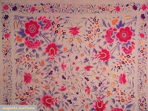 EMBROIDERED CHINESE EXPORT SHAWL, 1890-1920