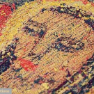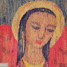 NYC based artist, Sirkka Ahlskog, has her weavings in museum collections, this piece, "Crimson Angel" was worked in silk, linen, wool & metal threads, dowel at top for hanging, 24"X24.5", excellent. CMA, VA