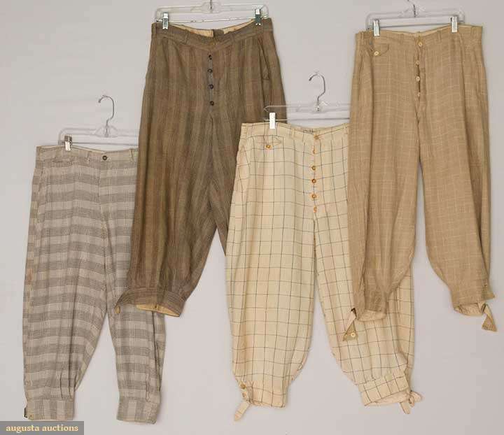 Cotton, linen & wool plus-fours; all windowpane or checked; some wear/small holes