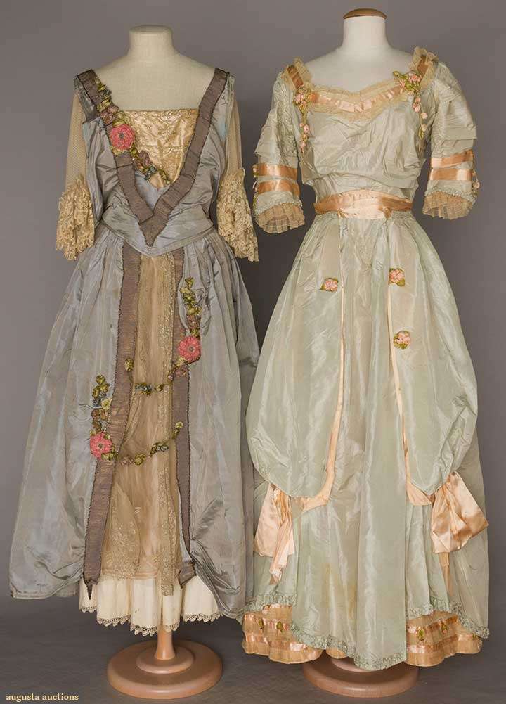 2 SILK TAFFETA PARTY DRESSES, GENEVA & N.Y., 1916-1920s