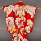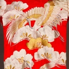 Red silk w/ gold & white crane & flower embroidery, exc; t/w 1 short black haori, vg