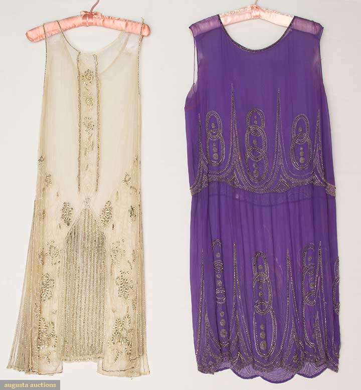 2 SILVER BEADED DRESSES, 1920s