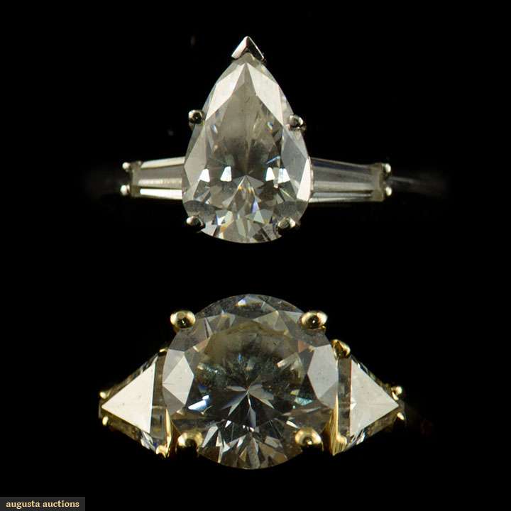 1 white gold w/ marquise stone & 1 yellow gold large round stone
