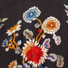 Black silk & orange silk trim, silk embroidered blossoms in shades of blue & orange, drawstring W to 44", Inseam 22", (small cuff stains, some embroidery pulls) very good.