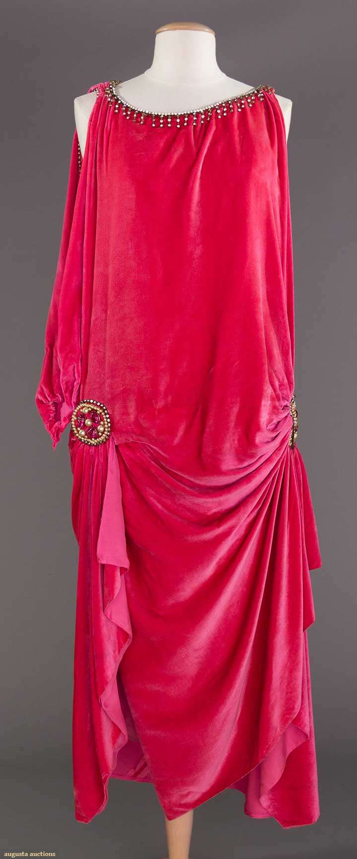 ROSE VELVET EVENING GOWN, c. 1918