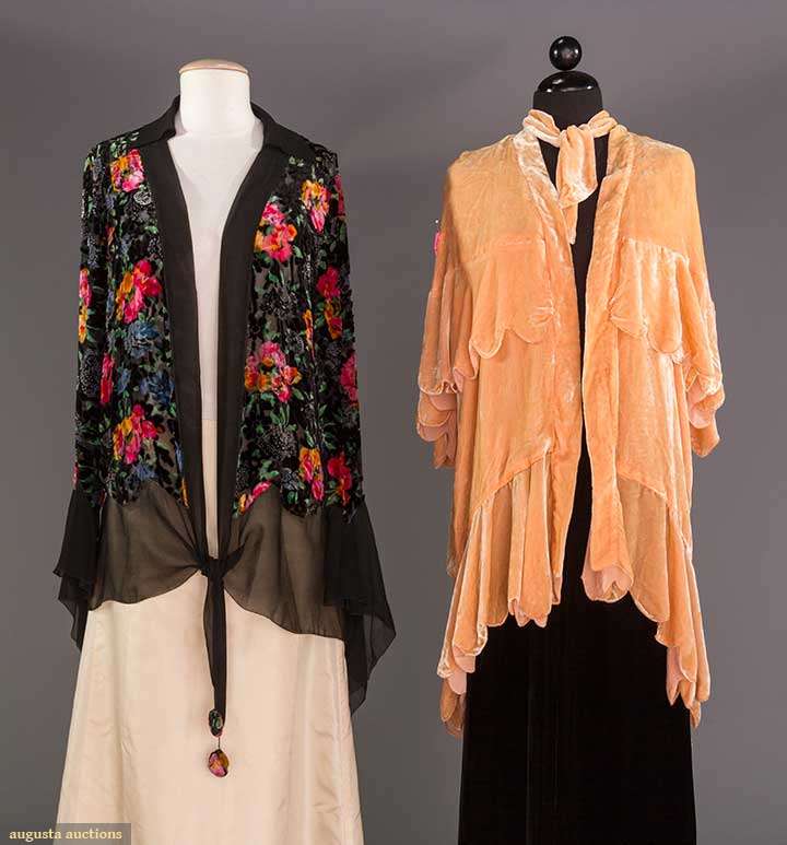 TWO SILK VELVET EVENING WRAPS, 1915-1930
