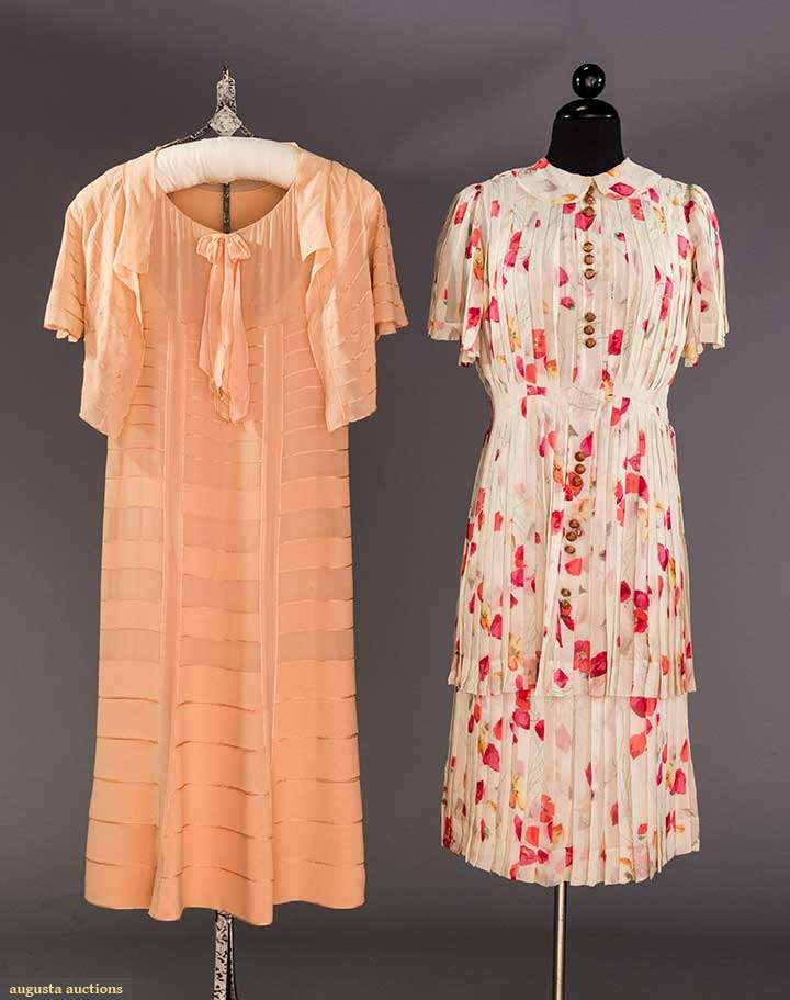 TWO SILK CHIFFON DAY DRESSES, 1930