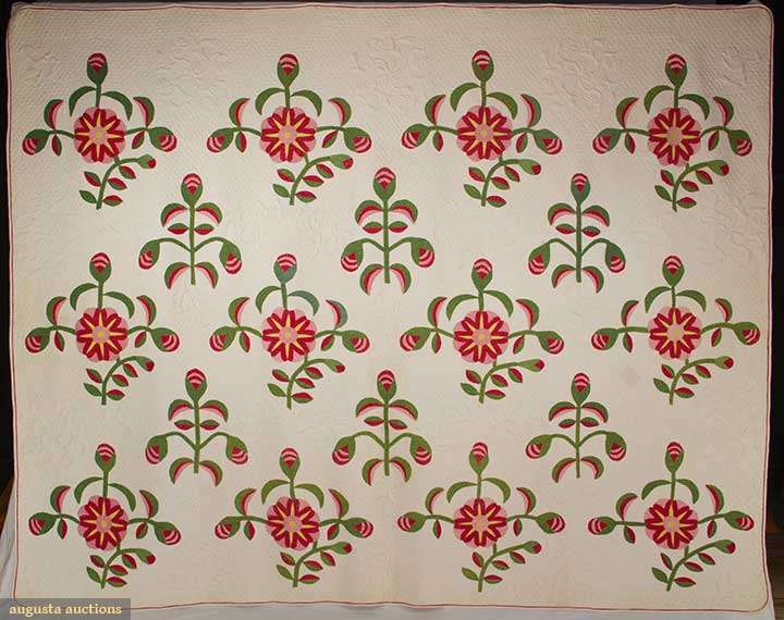 APPLIQUE FLOWER & BUD QUILT, 1850-1870
