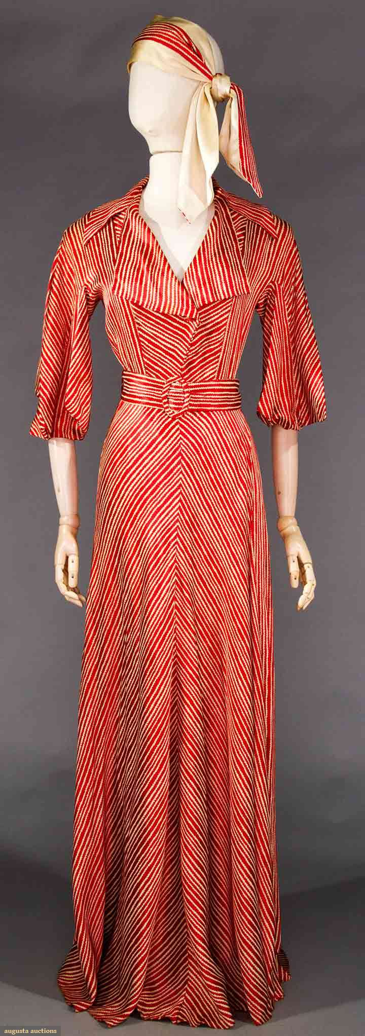 RED & WHITE STRIPED HOSTESS GOWN, 1940s