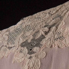 1 pale pink w/ Val lace trim & square neckline, B 36", excellent; 1 medium pink w/ Val lace trim, attached sash & ruffled capelet, B 38", (1 sash end stained) very good; 1 pink-peach w/ applique lace & RKL monogram, B 38", (tiny holes in lace near bust) very good.