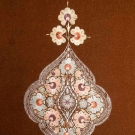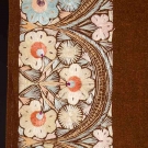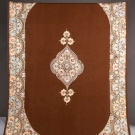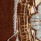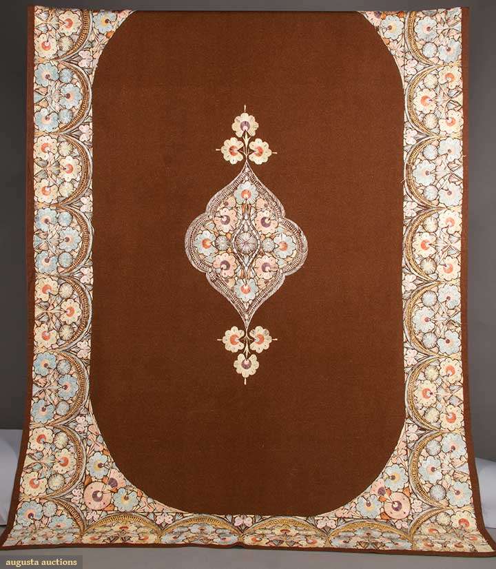 Possibly Hungarian, hand-woven & pieced brown wool, silk embroidered center lozenge & borders in peach & blue blossoms, 63"x95", (embroidery worn in few spots) very good.