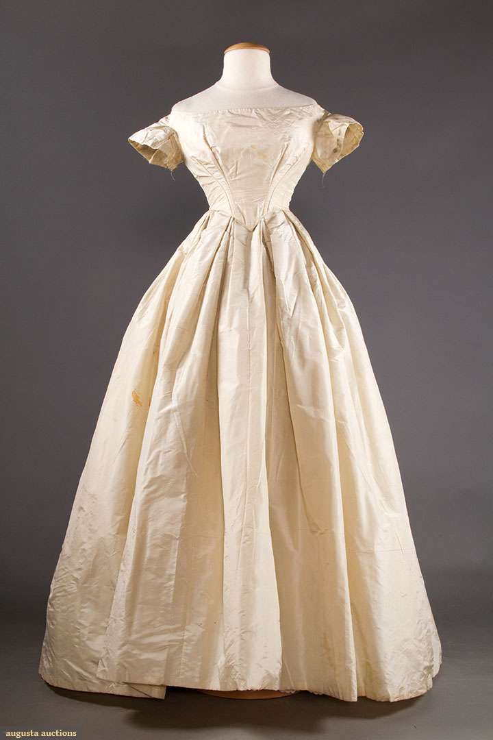 WHITE SILK WEDDING GOWN, EARLY 1850s