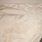 Silk taffetta, boned & lined bodice, cap sleeves, full box-pleated skirt, stiffened gauze skirt lining, B 31", W 20", (tulle remnants on sleeves, brown stains on right skirt side) very good.