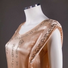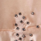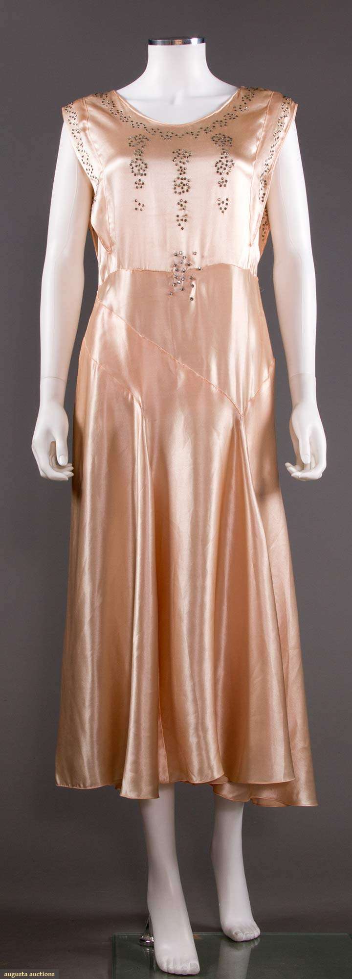 pale peach silk charmeuse, bias cut, rhinestone bodice trim, a few minor repairs & rhinestone tears
