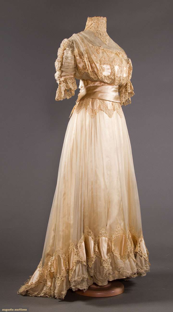 SILK & BRUSSELS LACE WEDDING GOWN, NYC, 1902
