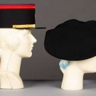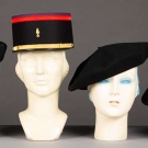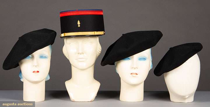 All black wool: 1 French military style cap w/ red & gold trim & 3 Basque berets w/ colorful labels, all excellent.