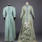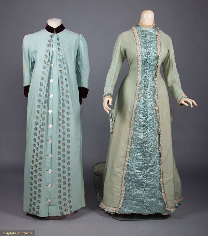 TWO WOOL MORNING BUSTLE ROBES, 1870-1880s